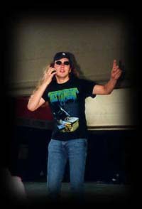 Eine erstklassige Band mit erstklassigen Verbindungen - Christoph, the only real rockstar, voll in Aktion, den nächsten Gig klar machen...