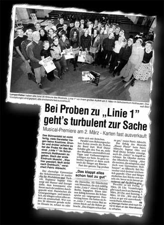 Bis dahin berichtete die WAZ am 21. Februar 2001 über die Proben. Zugegeben, so ganz “nach Drehbuch”, wie der Bericht wiedergibt, lief doch noch nicht alles, aber das wiederum mußte ja niemand wissen, war ja auch fast nebensächlich. Viel interessanter war da schon die Tatsache, das der Kartenvorverkauf so wahnsinnig gut lief, “fast ausverkauft” - das hörte man gerne!