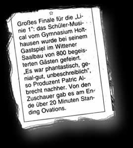 Aber all die Anstrengungen für diesen letzten Auftritt hatten sich gelohnt und so berichtete die WAZ Witten am 28. Juni 2001, wie die Wittener uns “gefeiert” haben...